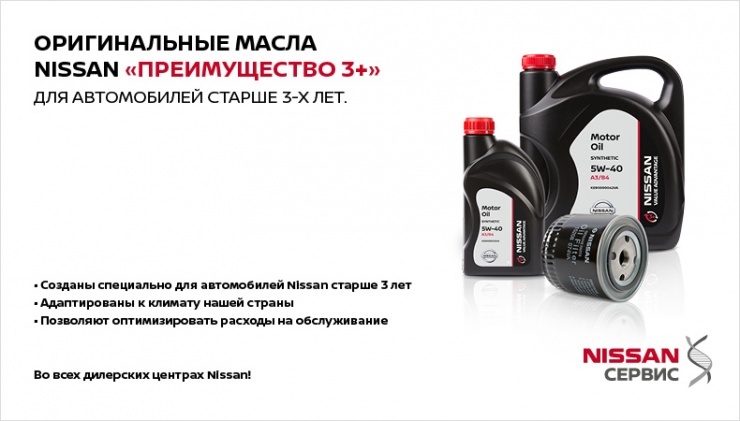 Оригинальные масла Nissan линейки «Преимущество 3+» созданы специально для автомобилей Nissan старше 3 лет, с учетом всех их особенностей. Они адаптированы к климату нашей страны. 1 К тому же, благодаря сокращению издержек, они предлагаются по комфортным ценам, позволяя оптимизировать ваши расходы на обслуживание.